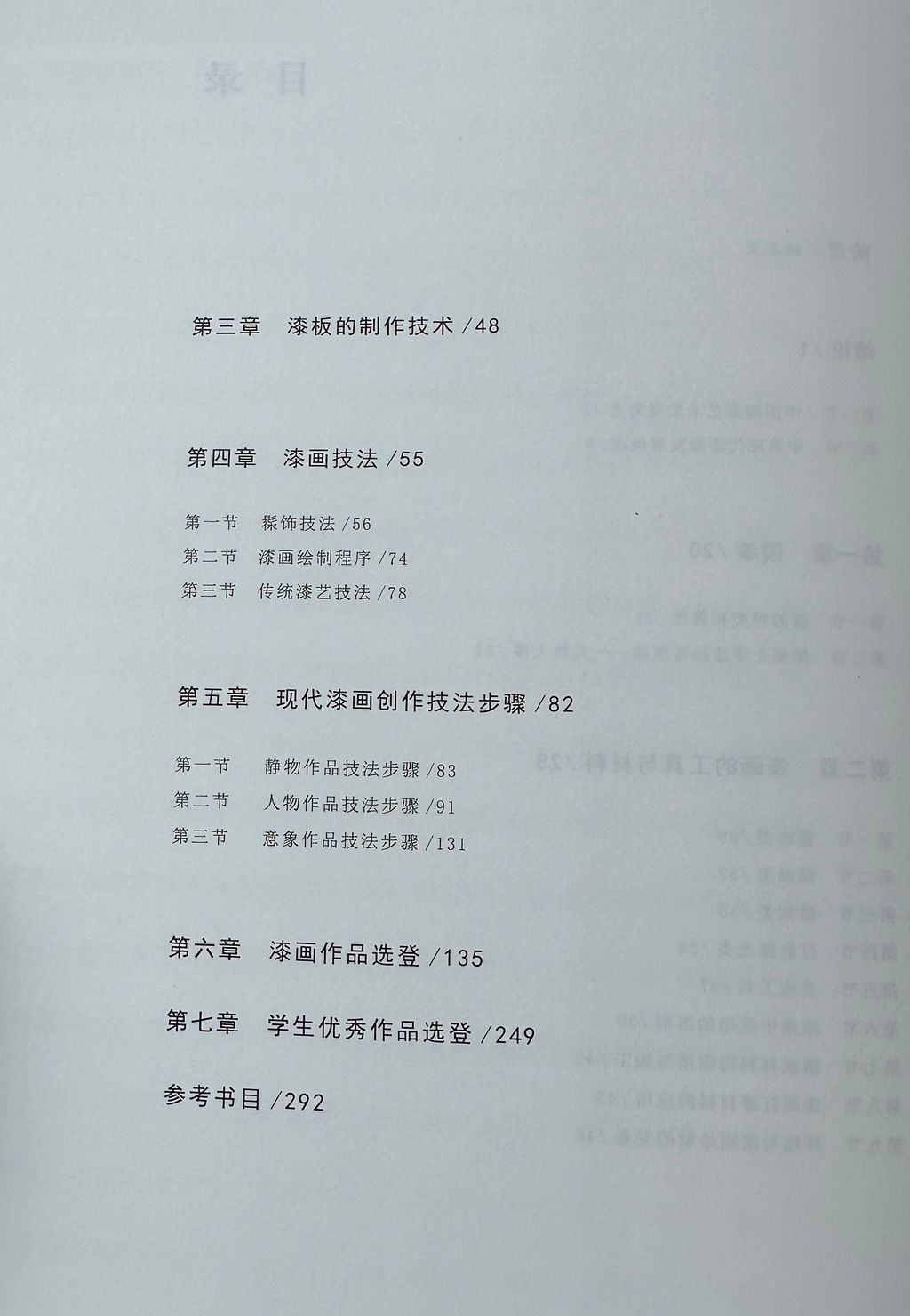 全面、系統地對漆畫這一歷史悠久的畫種的審美特色、創作材料、創作手法等進行了詳細的介紹,