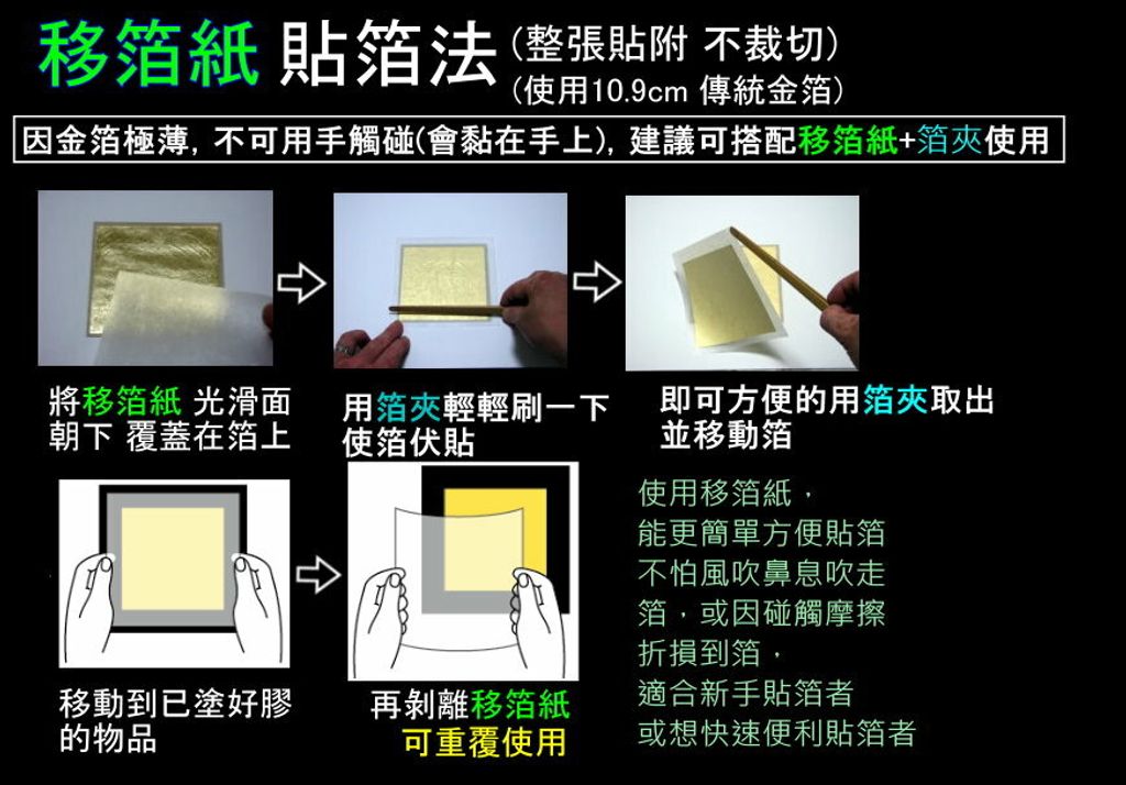常用於10.9cm的傳統金箔, 可搭配移箔紙一起使用